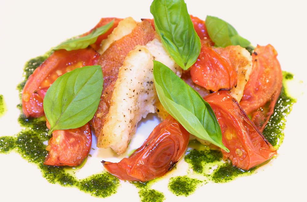 エビ・ホタテ・メカジキのオイルマリネ アンチョビとセミドライトマト添え
